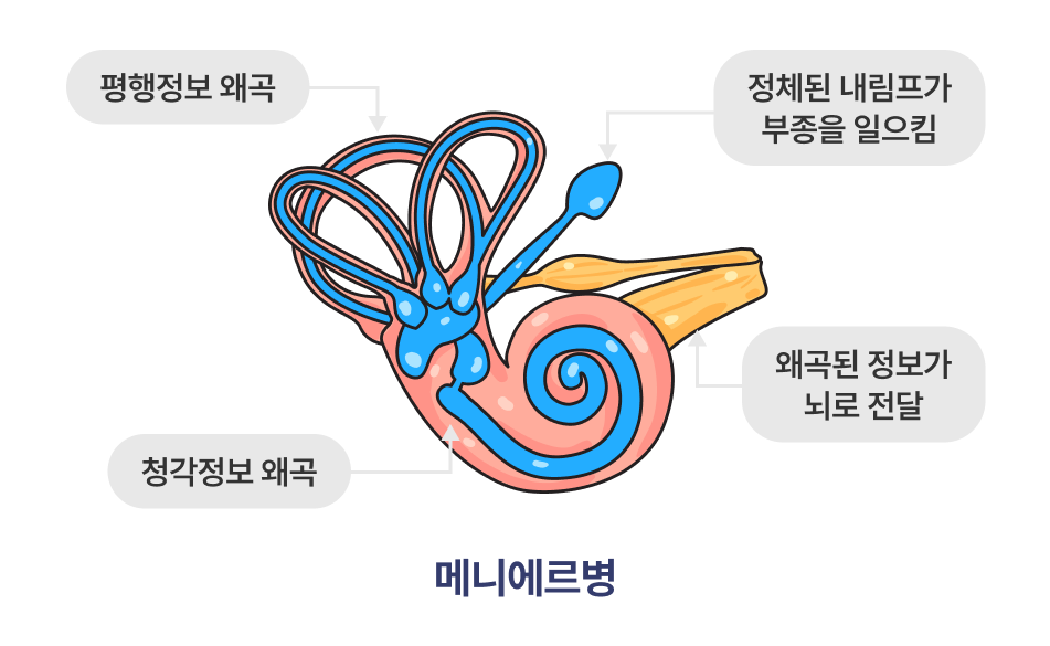 이로 인해 어지럼증, 청력 저하, 이명 등 다양한 증상이 발생하게 됩니다.