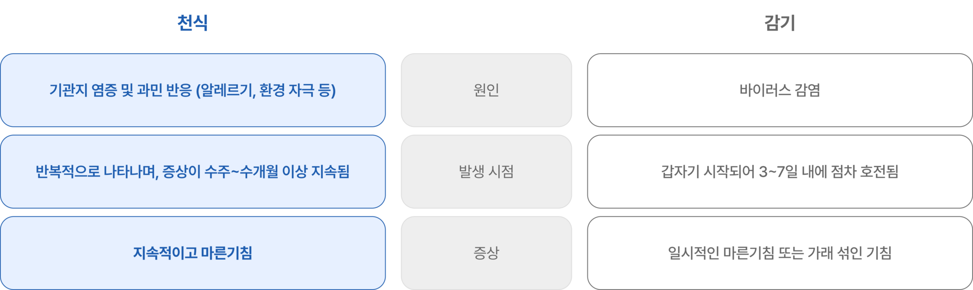 천식과 감기 차이점
